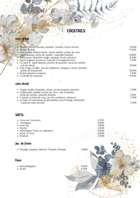 jus d’ananas, sirop de vanille , cannelle fraîche) 8,90€